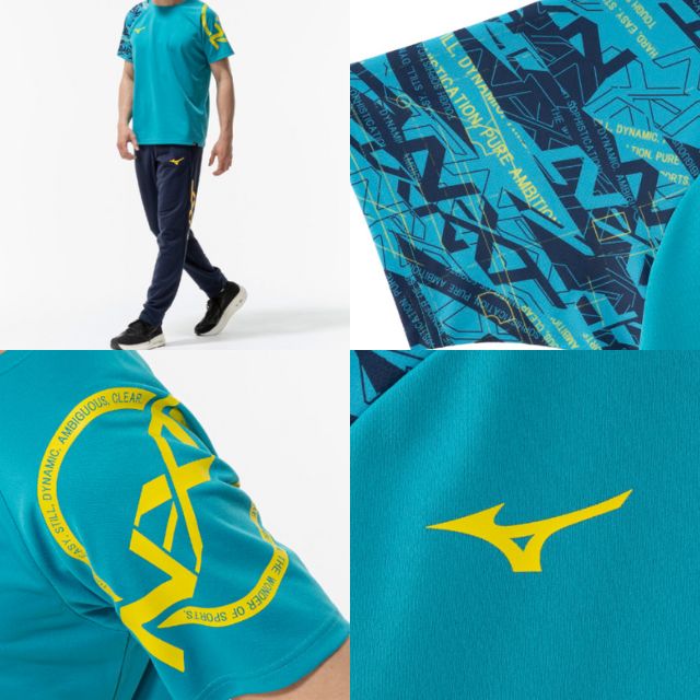 吸汗速乾性に優れた「ミズノクイックドライプラス」素材を使用した、高機能スポーツシャツ。