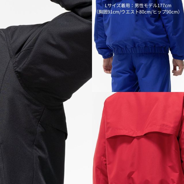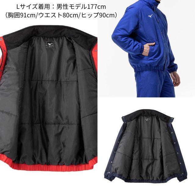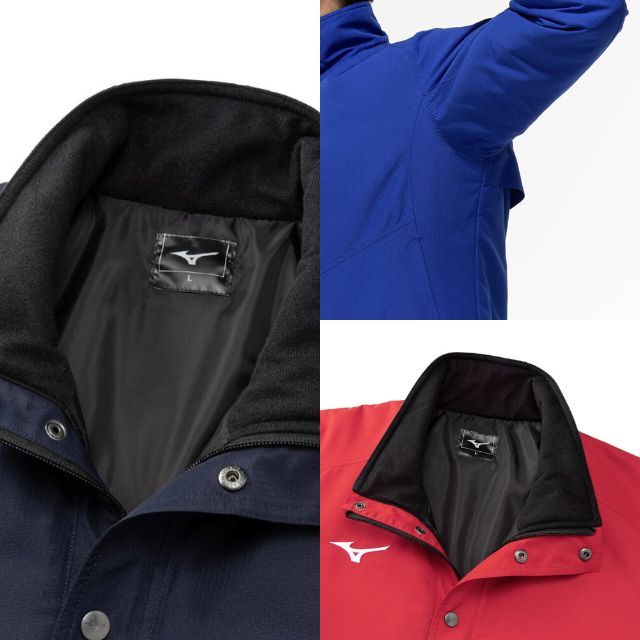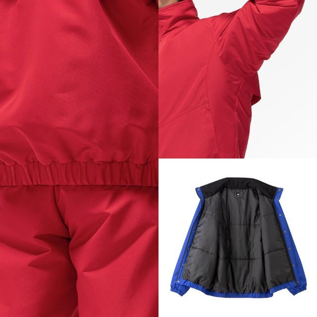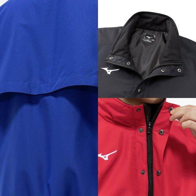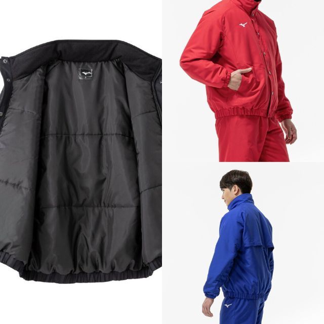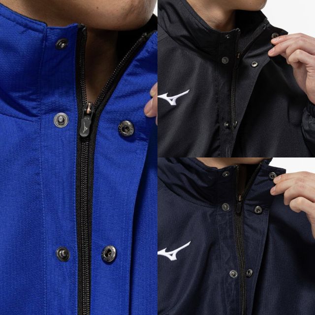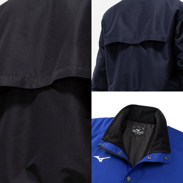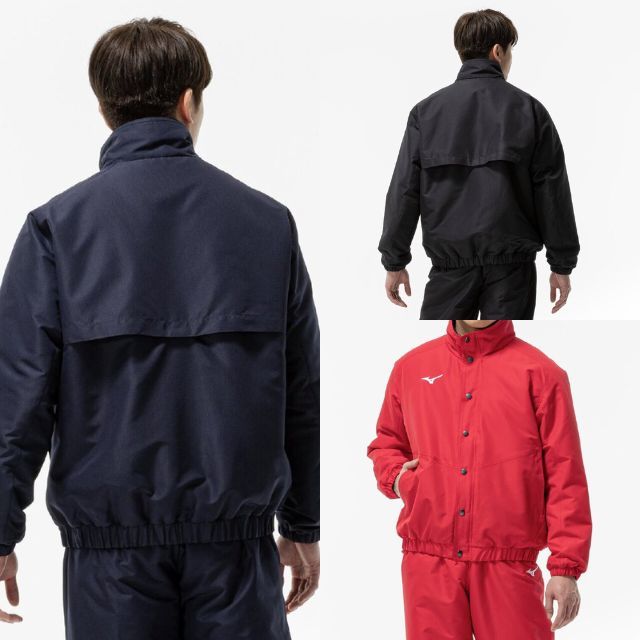 体の水分を吸収して発熱する、ミズノ独自素材〈ブレスサーモ〉を搭載した高機能ウォーマージャケットです。