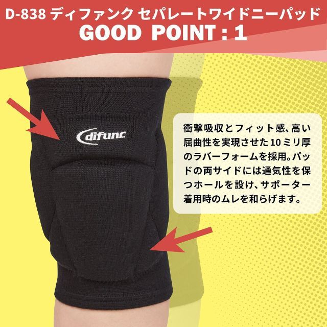 あらゆる動きにストレスなく対応する全方向サポートパッドがプレー時の膝をサポートします。