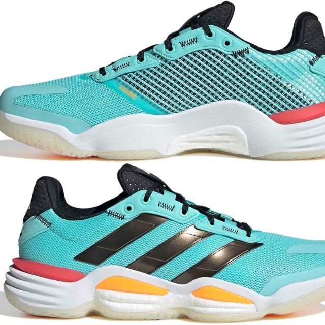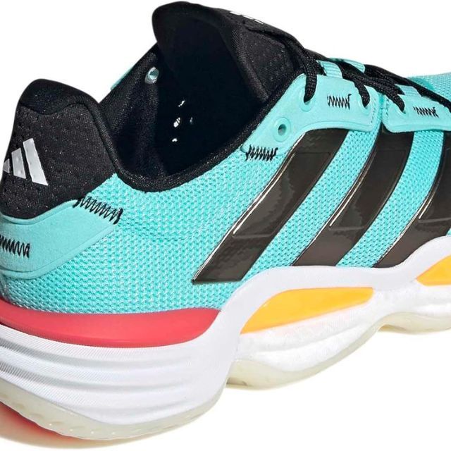 ディフェンダーを抜き去り、勢いよく踏み切ってジャンプシュートをキメるのをアシストする、アディダス インドアシューズ。