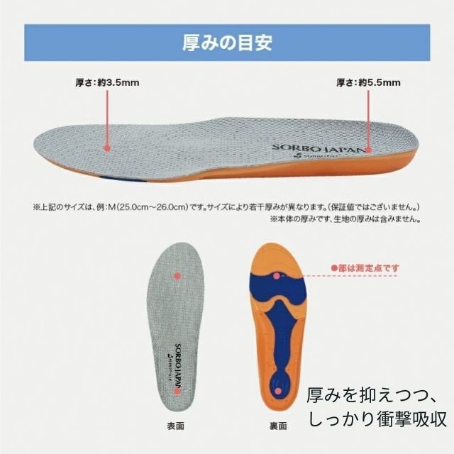 ・素材:アクロフォーム(高反発素材)、ソルボセイン(衝撃吸収素材)、ポリエステルメッシュ