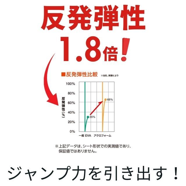 ・高反発アクロフォーム:一般的なEVA素材より反発弾性が約1.8倍。