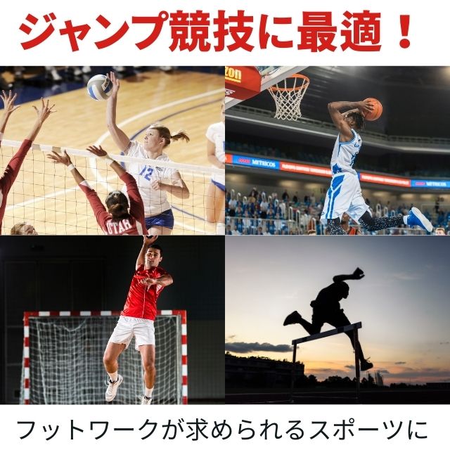 バスケットボール、バレーボール、ハンドボールなどジャンプ力や素早いフットワークが求められる競技に対応。