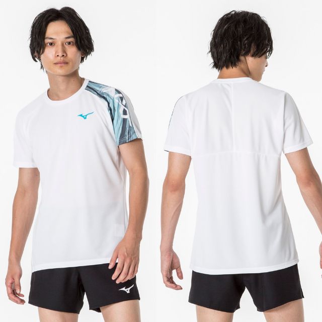 N-XTモチーフ。ニオイの元となる菌の増殖を抑える、抗菌防臭素材を使用しています。両腕の上げやすさを追求したMIZUNO MOVE TECHを搭載しています。