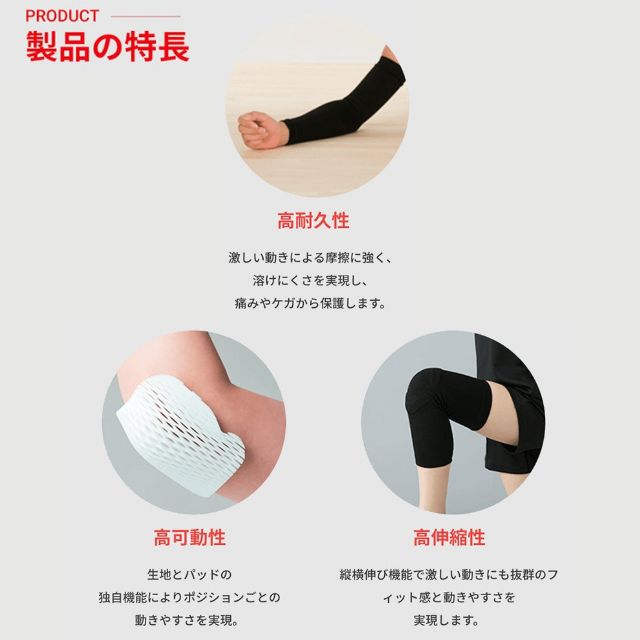 ・13mm厚の衝撃吸収パッドで、ひじをしっかりガード