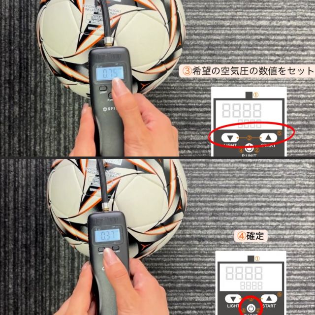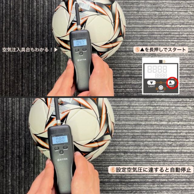 目標空気圧を設定してボタンを押すだけで自動注入&自動停止!