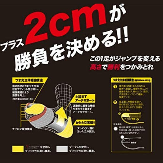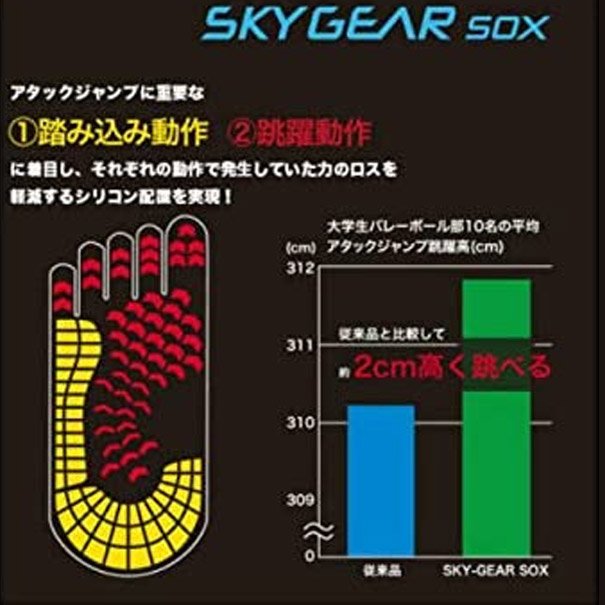 アタックジャンプ時の足の力のかかる方向に対してプリントを施すことで、力のロスを軽減し、パフォーマンス向上に!